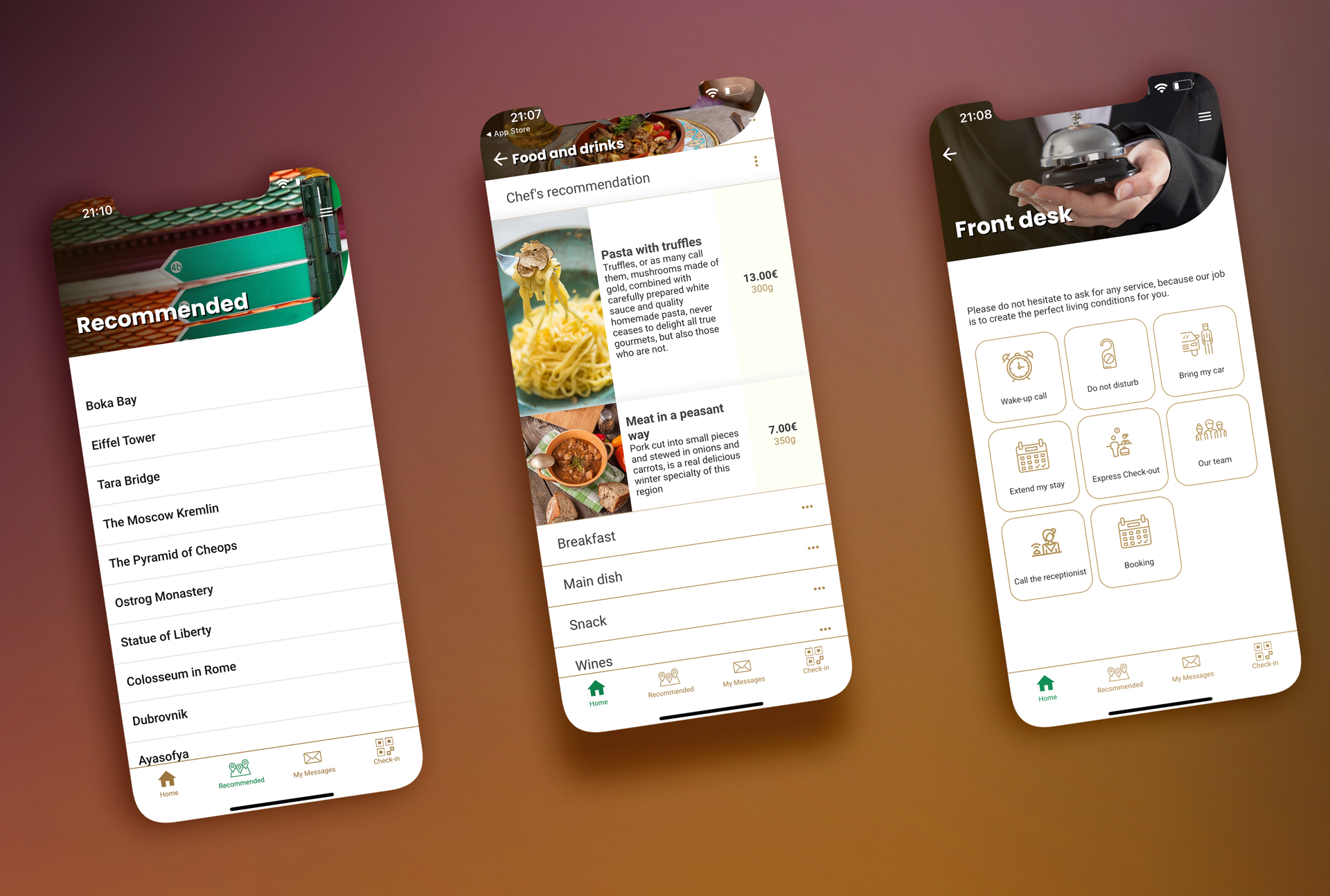 We realised we had to put the receptionist in the guest’s pocket. At least in the first phase. So we started doing it and developed a mobile app where the guest could get informed about all the services in the hotel and order some of them, like food and drinks, massages, sightseeing tours, etc. But as you know, not all the hotels are the same, and not all the hotels offer the same services.